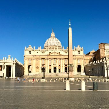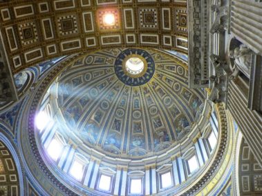 – Basilique St-Pierre : Edifiée au IVe siècle, elle fut reconstruite au XVIe siècle à la demande de Jules II, soucieux de donner à Rome une basilique aux goûts de l’époque, pouvant témoigner de la grandeur de l’église. Feuilles d’or, marbres, bronze et mosaïques habillent cette basilique. Elle sert d’écrin à la Pièta de Michel-Ange mais aussi au tombeau de l’apôtre Pierre, situé sous le baldaquin du Bernin.