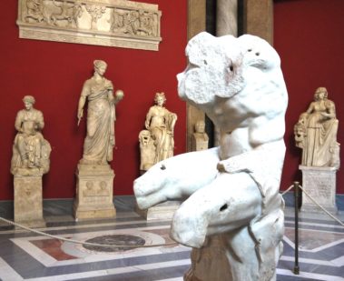 – Musée Pio Clémentino et la salle des animaux : musée de sculptures aux chefs d’œuvres, ayant servi de source d’inspiration pour de nombreux artistes renaissance, baroque ou moderne. Les richesses du Vatican étant inépuisables, parmi ses 7 kilomètres de musées se trouve également un zoo hors du commun où les animaux figés à jamais sont de pierres. Ces sculptures animalières permettent de comprendre les rôles des animaux sous l’antiquité, tout en évoquant l’importance de la religion mithraïque, représentée ici avec la scène de la tauroctonie: un sacrifice de taureau.