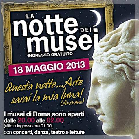 Nouvelle édition de la nuit des musées à Rome ! Cette initiative européenne donne l’occasion de visiter gratuitement les plus beaux musées dans une atmosphère nocturne unique. Ils vous ouvriront leurs portes de 20 h à 2h du matin et de plus, certains d’entre eux, proposeront des événements annexes tels que concerts, pièces de théâtre, projection…