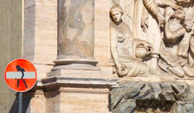 Et pourtant, les interventions de Clet s’inscrivent dans une thématique ancrée depuis des siècles. Le centre historique de Rome possède environ 500 oratoires dédiés à la Vierge. On les découvre à chaque coin de rue, telle que la place Farnèse où l’on en compte pas moins de 3 !