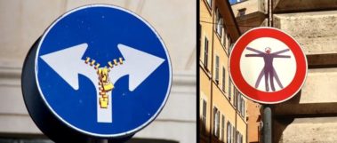 de drôles de panneaux à la signalétique plutôt cocasse, signés : Abraham Clet.