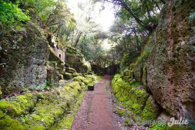 Également surnommée par les locaux « le canyon de Cerveteri », cette route creusée dans le tuf avait pour objectif de relier la ville des vivants à celle des morts. Jalonnée de tombeaux, nous pénétrerons dans l’un des plus extraordinaires du site: la tombe des colonnes doriques, remontant au IV siècle avant J.C..