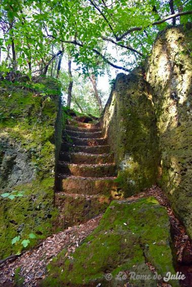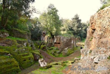 Équipés de bonnes chaussures de marche, nous nous rendrons jusqu’aux anciennes fortifications de la ville. Les étrusques ont toujours excellé dans le domaine de la défense. Rappelons que la première muraille de Rome fut étrusque ! Mais cette excellence étrusque se retrouve également en matière de travaux hydrauliques ! Là encore, est-il nécessaire de mentionner que le premier égout de Rome « la Cloaca Maxima » est un ouvrage étrusque ? Ainsi, si le terrain le permet (l’endroit est humide et le sol peut être très glissant), nous descendrons jusqu’au « ponte sodo », galerie de drainage creusée dans le tuf. Les étrusques étaient aussi passés maîtres dans l’art de maîtriser les eaux !