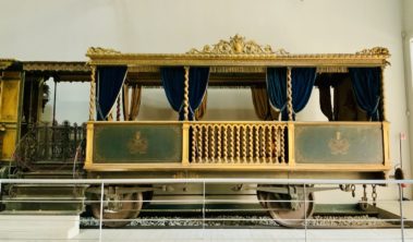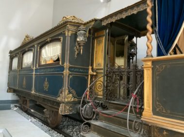 Pie IX se fait même construire en 1858 un train papal, dont le confort interne n’a pas son pareil. Composé de 3 wagons, ce train est richement décoré de peintures, de stucs et de précieuses étoffes. Au sol se trouve de la moquette, mais les tapis qui l’ornent proviennent d’Aubusson. La salle de bain est quant-à elle, entièrement recouverte de boiserie d’acajou.
