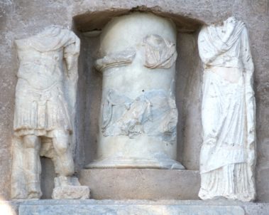 Catacombes, mausolées, colombariums, hypogés se côtoient le long de cette route, où nous développerons des thèmes comme le culte des morts et les rituels funèbres. Une tombe se détache des autres : le mausolée de Romulus (fils de l’empereur Maxence). Inséré dans un complexe impérial comprenant palais et cirque, il sera pour nous l’occasion d’évoquer l’idéologie impériale qui va se développer à l’époque tétrarchique.